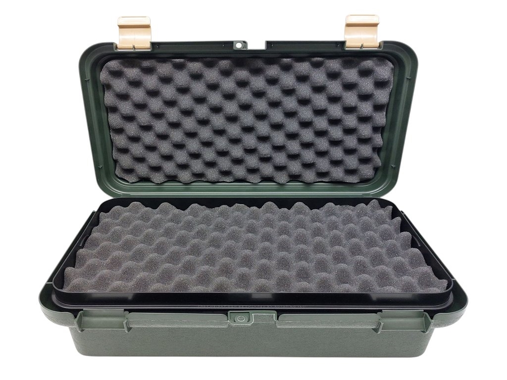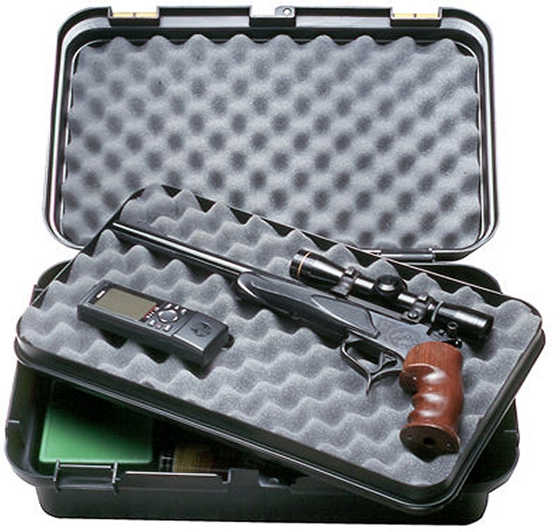 Valigetta porta armi e accessori in robusta plastica con due ripiani, multiuso, con due chiusure, maniglia, e predisposizione per chiusura a lucchetto. Misure esterne larghezza 52 cm, lunghezza 32 cm,altezza 23 cm.Misure vano interno inferiore larghezza 47 cm, Lunghezza 25 cm, altezza 10 cm Misure vano interno superiore Larghezza 48 cm, Lunghezza 27 cm, altezza 10 cm Peso lordo: 2115 grammi.Made in Usa.