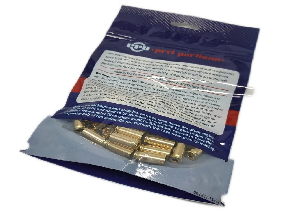 Bossolo PPU in ottone non innescato calibro 44 magnum. Confezione da 50 pezzi. Peso lordo: 395 grammi.