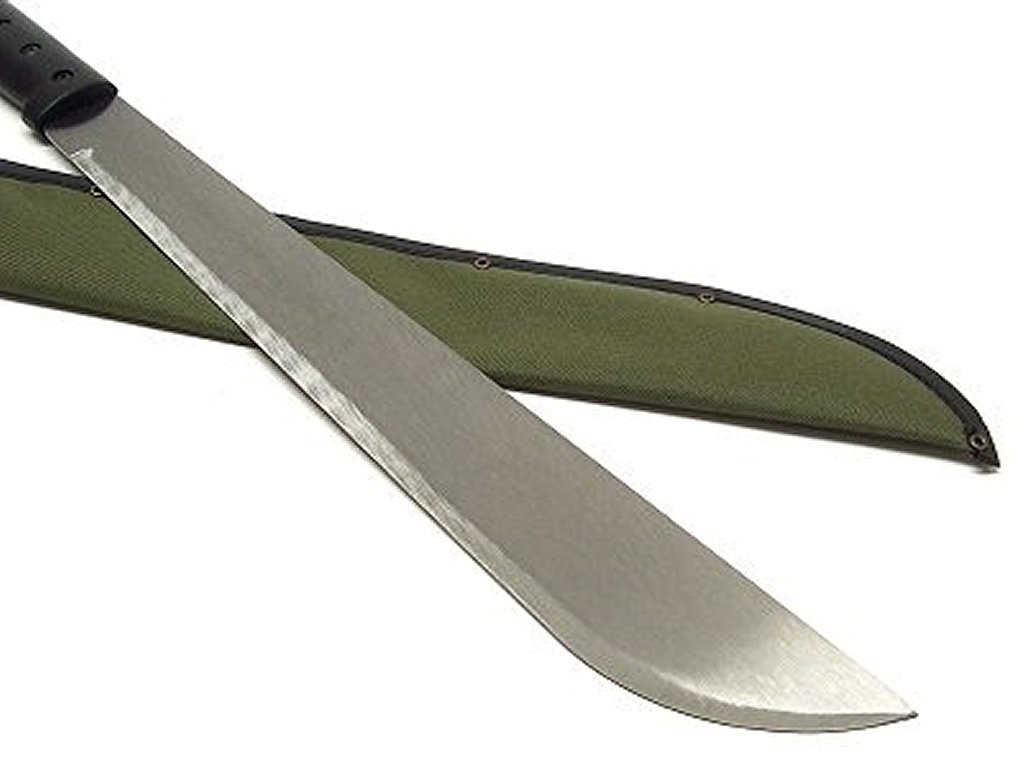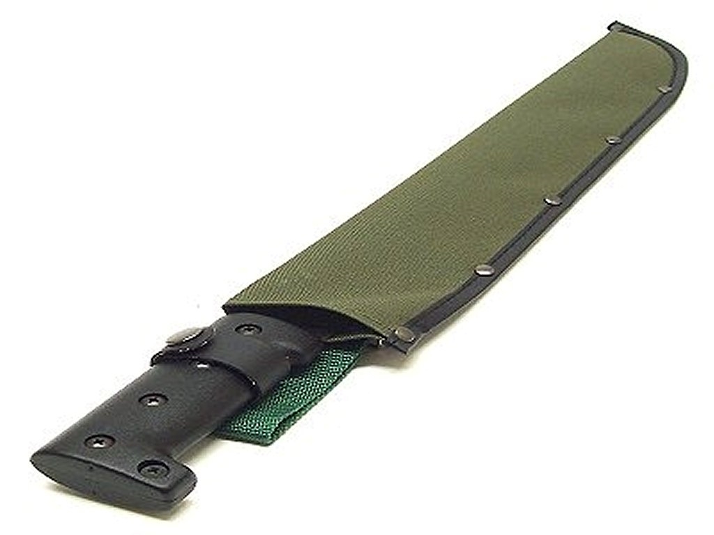 Lunghezza lama 46 cm, larghezza lama massima 6 cm, lunghezza totale 58 cm. Lama in acciaio. Dotato di fodero in tela con attacco per cinturone con fori. Passante per cintura altezza fino a 7 cm. Spessore lama dorso 1,75 mm. Peso 482 grammi. Manico in poliuretano. Peso lordo: 474 grammi.