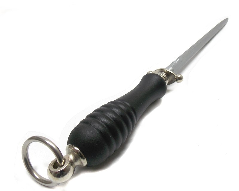Lunghezza lama 36 cm, lunghezza totale 51 cm. Manico in plastica dotato di anello. Peso lordo: 528 grammi. Prodotto in Italia.