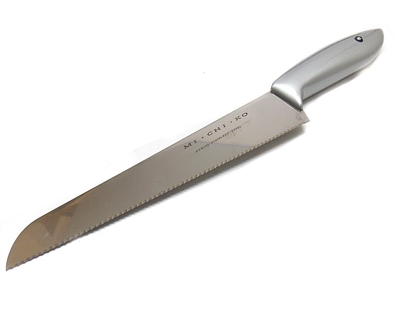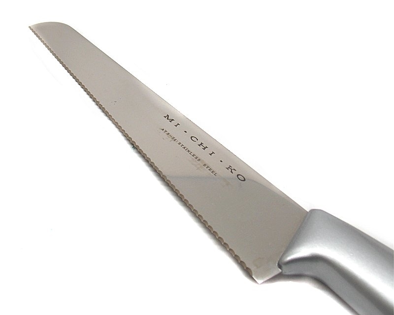 Coltello da cucina. Lunghezza lama dentata 18,5 cm, lunghezza totale 30,5 cm, larghezza lama 3 cm. Peso lordo: 214 grammi.