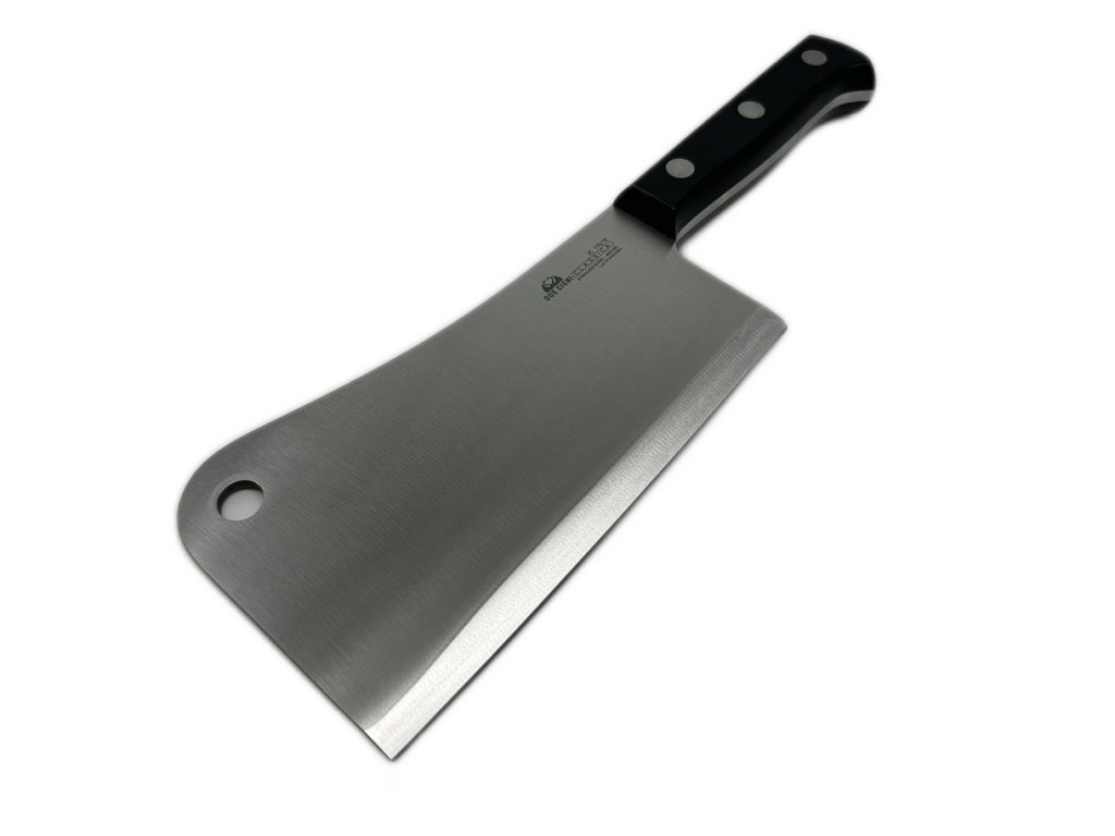 Coltello da cucina. Lunghezza lama 18 cm, larghezza lama massima 10,5 cm, lunghezza totale 31 cm. Materiale lama: acciaio inox 4116 hrc55/57. Manico pom per lavastoviglie. Rivetti in acciaio inox. Prodotto in Italia. Peso lordo: 802 grammi