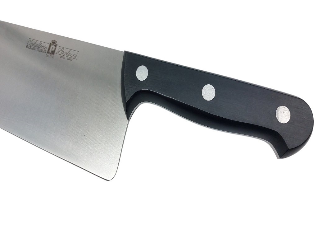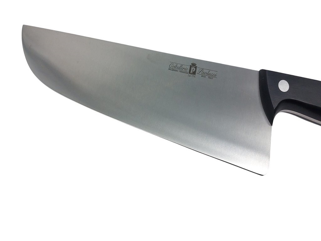 Coltello da cucina. Lunghezza lama 32 cm, larghezza lama massima 8,5 cm, lunghezza totale 45 cm. Tipo pesante. Prodotto in Italia. Peso lordo: 761 grammi.