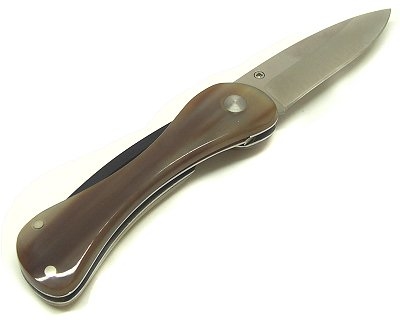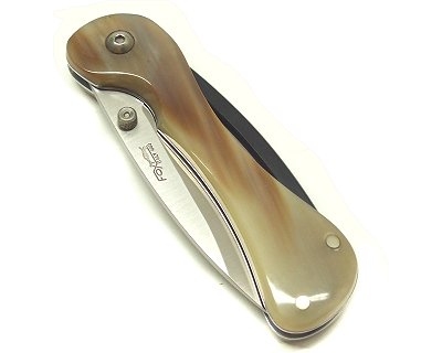 Coltello sportivo. Lunghezza lama 7 cm, lunghezza totale aperto 18 cm, larghezza lama 2 cm. Manico in corno. Prodotto in Italia. Peso lordo: 110 grammi.