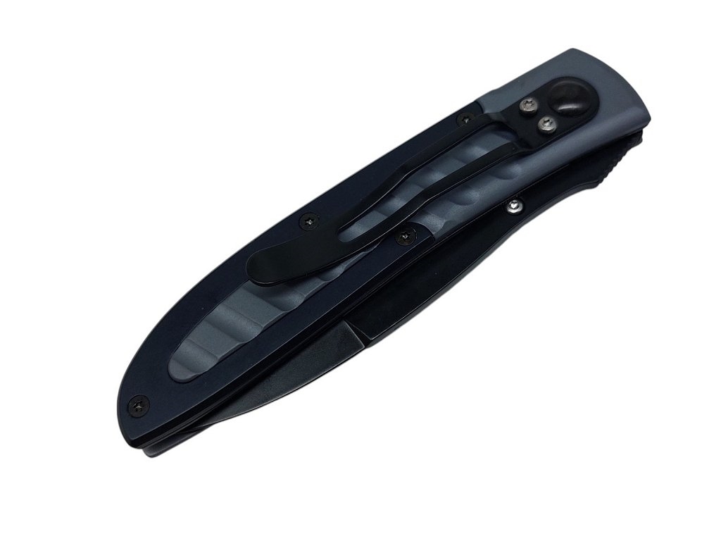 Coltello sportivo. Lunghezza lama 7 cm, lunghezza totale aperto 19 cm, larghezza lama 2 cm. Lama di colore nero. Coltello dotato di clip. Manico in metallo e gomma antisdrucciolo. Prodotto made in Italy. Peso lordo: 102 grammi.
