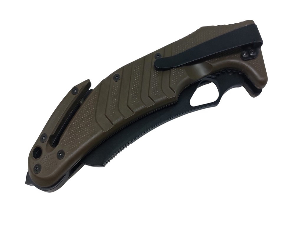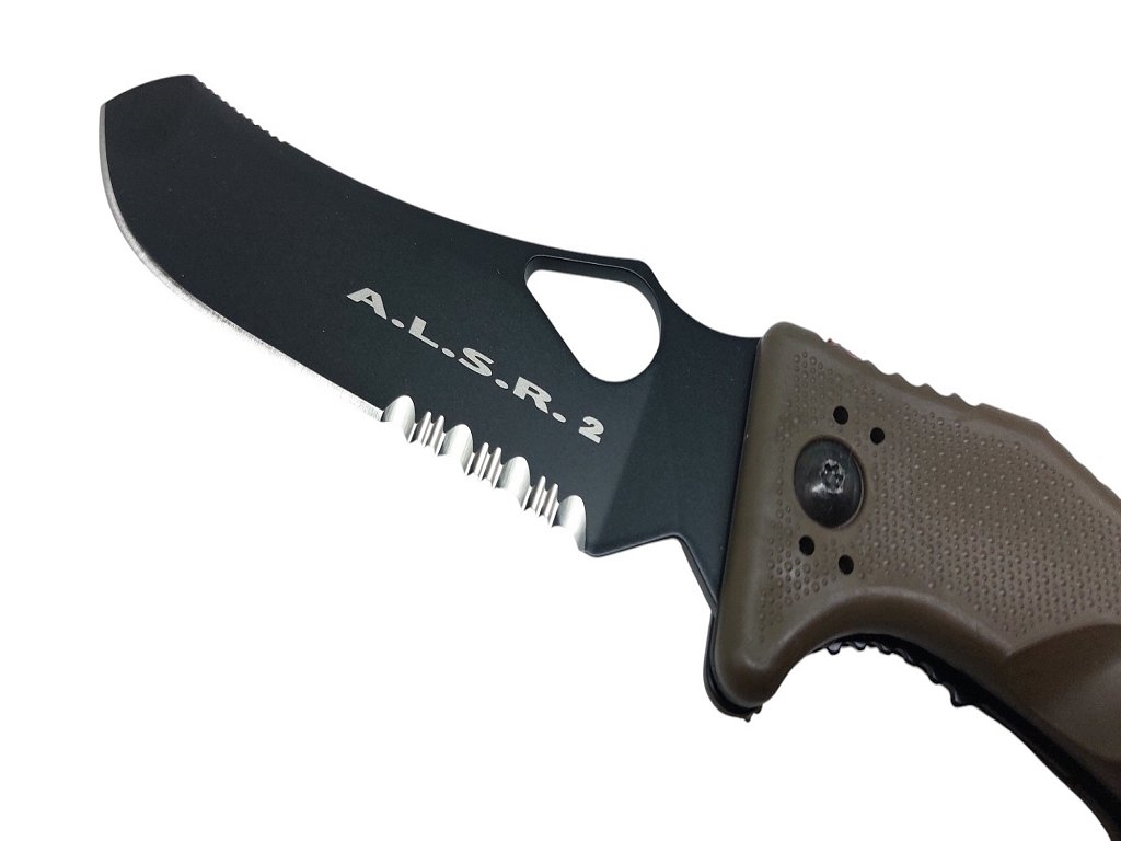 Lunghezza lama chiudibile 8,5 cm, larghezza lama 2,5 cm, lunghezza totale aperto 24 cm. Dotato di una lama speciale per il taglio della cintura di sicurezza, di clip per metterlo al cinto e di un fodero. Coltello ideale per la sicurezza in aria, terra e mare. Lama in acciaio inox cobalto vanadio n690 co con finitura al teflon manico in forprene aeronautico. Prodotto in Italia. Peso lordo: 219 grammi.