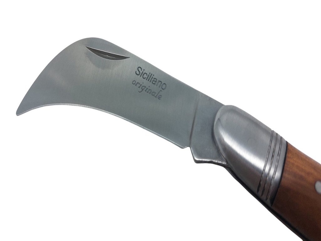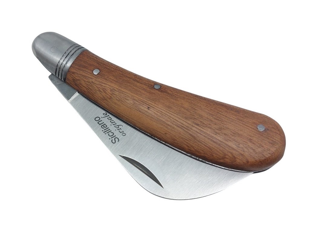 Coltello sportivo. Lunghezza lama 7 cm, larghezza lama massima 2,5 cm. Lunghezza totale aperto 19 cm. Manico in legno. Prodotto in Italia. Peso lordo: 80 grammi