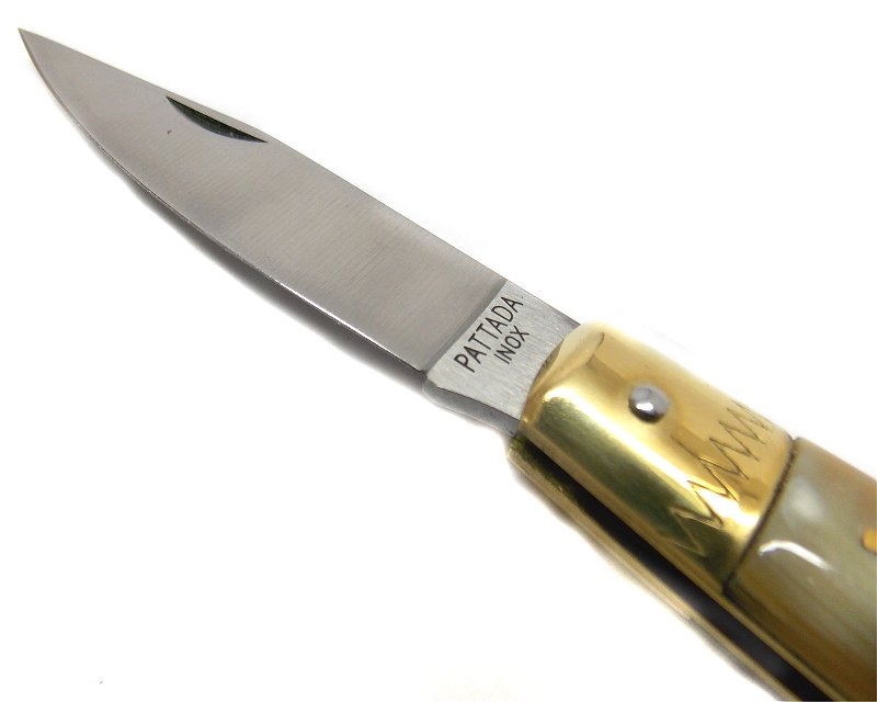 Coltello Sportivo. Lunghezza lama 6,5 cm, lunghezza totale aperto 16 cm, larghezza lama 1,5 cm. Lama in acciaio inox affilata a mano. Manico in corno chiaro. Prodotto in Italia. Peso lordo: 47 grammi.