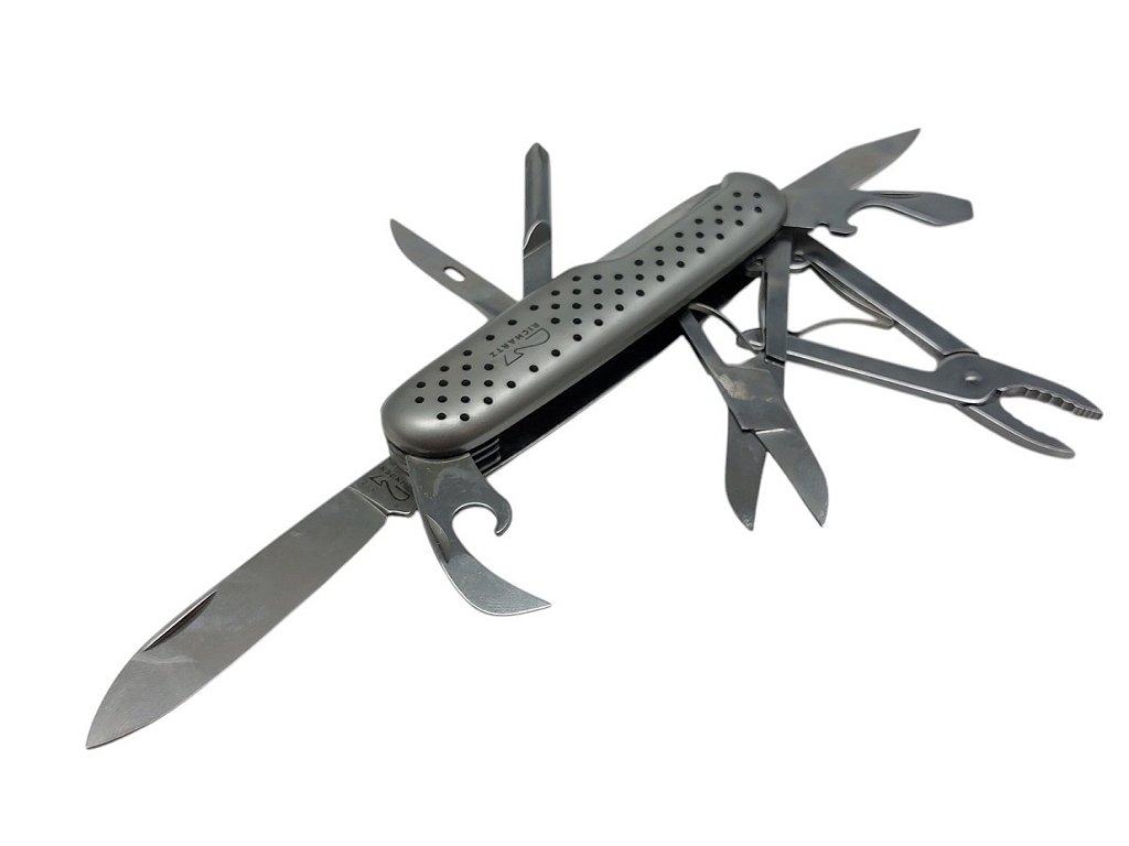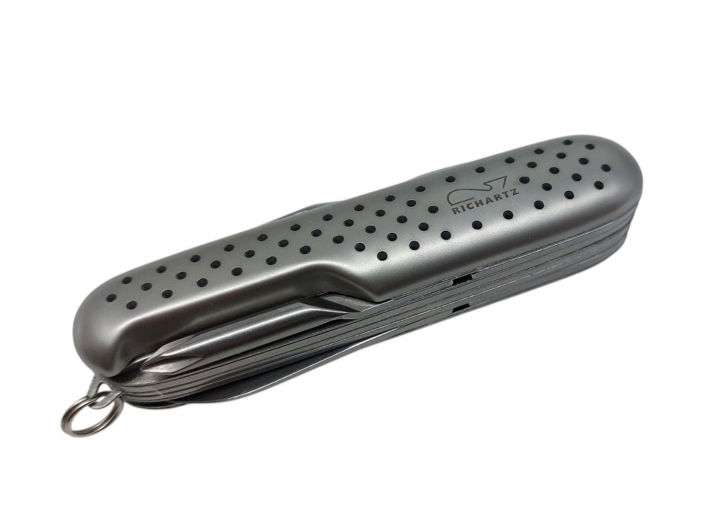 Coltello Richartz Solingen multiuso (8 usi), acciaio inox, lunghezza chiuso: 9 cm. Peso lordo: 148 grammi.