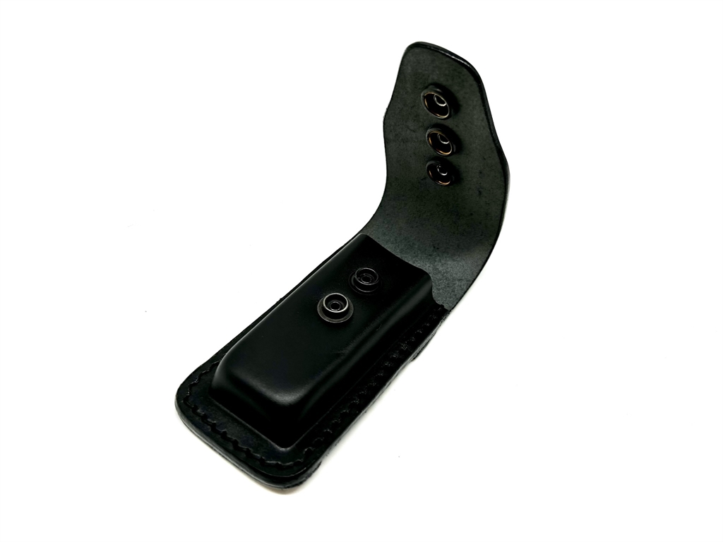 Dimensioni: lunghezza utilizzabile da 10 a 13 cm, larghezza utilizzabile 3,5 cm interno 2 cm. Chiusura pattina con doppio bottone a pressione che permette di regolare l'altezza in base alla misura del coltello. Dietro passante per cinture larghe fino a 5 cm, con apertura e chiusura tramite bottone a pressione. Realizzato in cuoio fiore di prima scelta. Disponibili nei colori: nero e marrone. Peso lordo: 78 grammi. Prodotto in Italia.