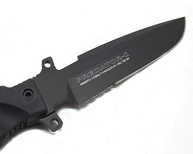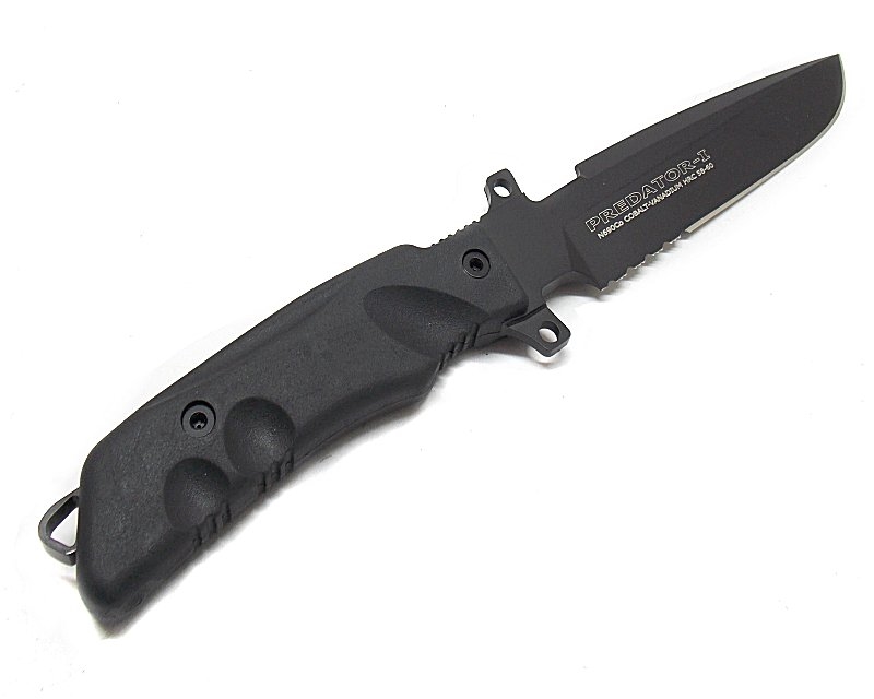 Coltello sportivo. Lunghezza lama fissa con sega 15 cm, larghezza lama 3,5 cm, lunghezza totale 30 cm. In acciaio inox cobalto vanadio n690, spessore mm. 6 finitura teflon nero opaca. Manico realizzato con uno speciale elastopolimero nominato forprene. Questo materiale ha una elevata resistenza termica fino a -40 gradi e +150 gradi. Fodero: nylon nero 1100d, multiposizione con estensibile cosciale e fasce cosciali di sicurezza. Prodotto in Italia. Peso lordo: 717 grammi