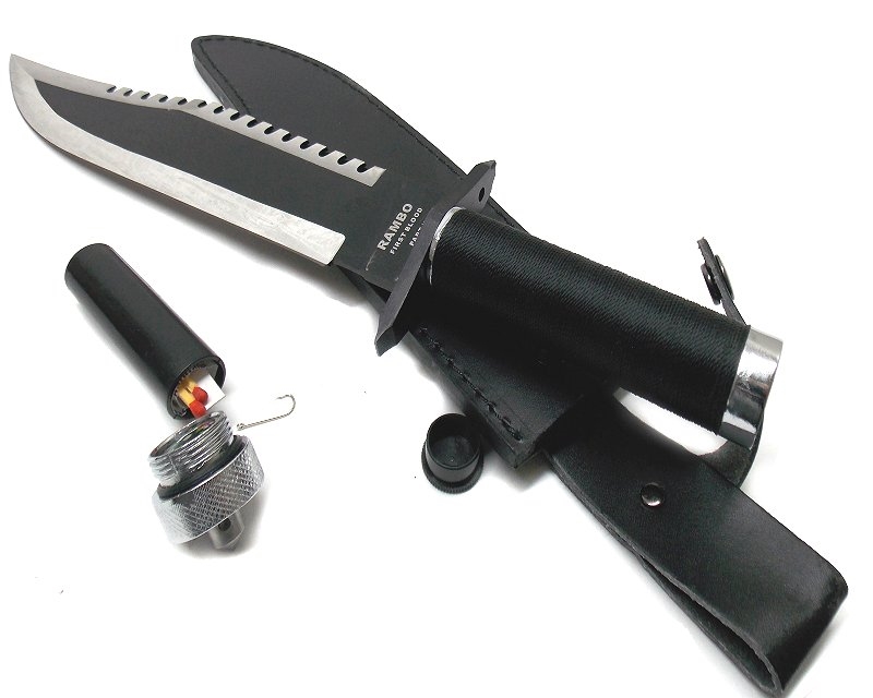 Coltello sportivo. LUNGHEZZA LAMA 23 CM, LARGHEZZA LAMA 4,5 CM, LUNGHEZZA TOTALE 40,5 CM. LAMA SEGHETTATA. DOTATO DI FODERO CON PASSANTE PER CINTURONE, BUSSOLA, KIT DI SOPRAVVIVENZA E PUNTERUOLO. Peso lordo: 790 grammi
