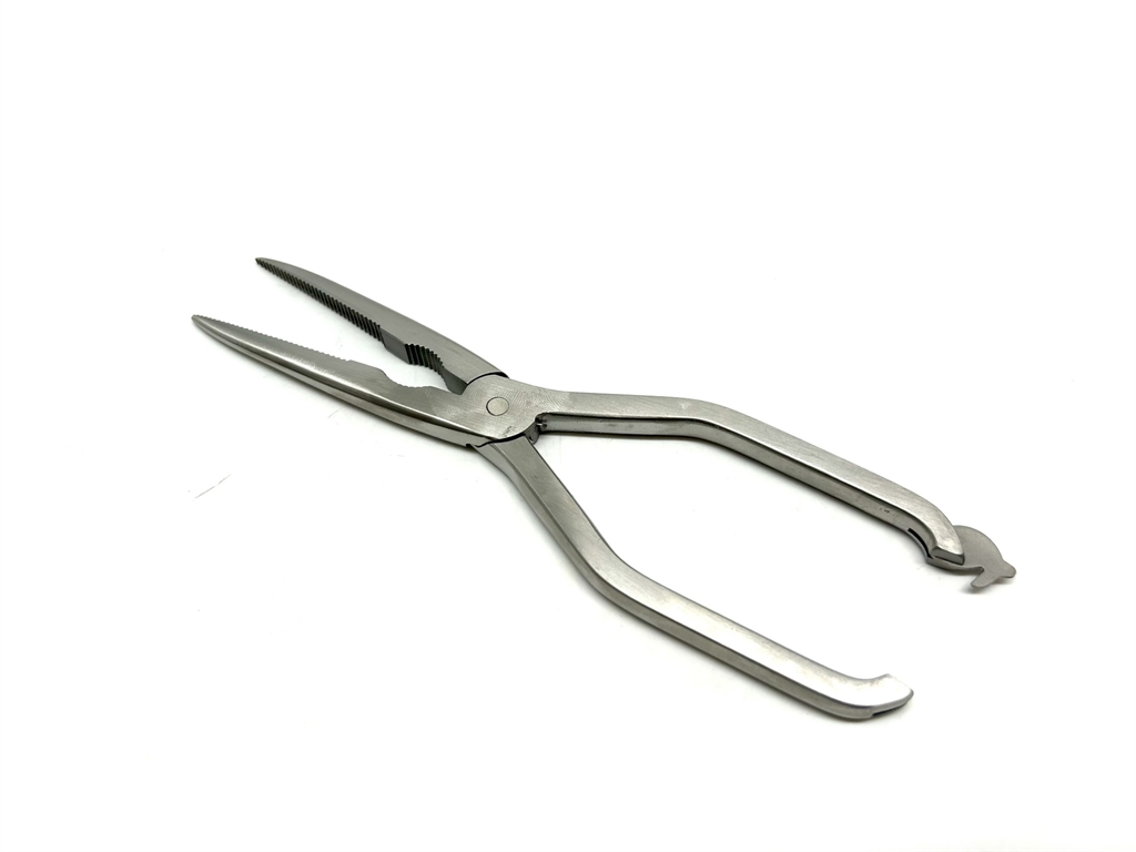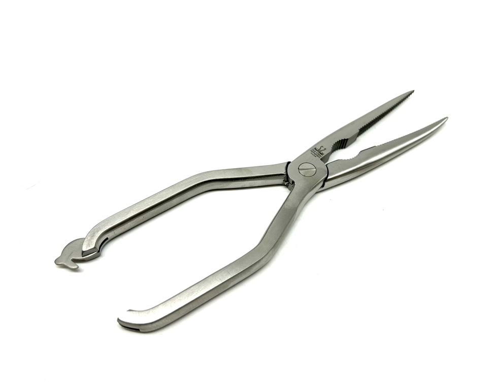 Pinza in acciaio satinato. Dotata di chiusura. Lunghezza 19 cm. Prodotto in Italia. Peso lordo: 181 grammi.