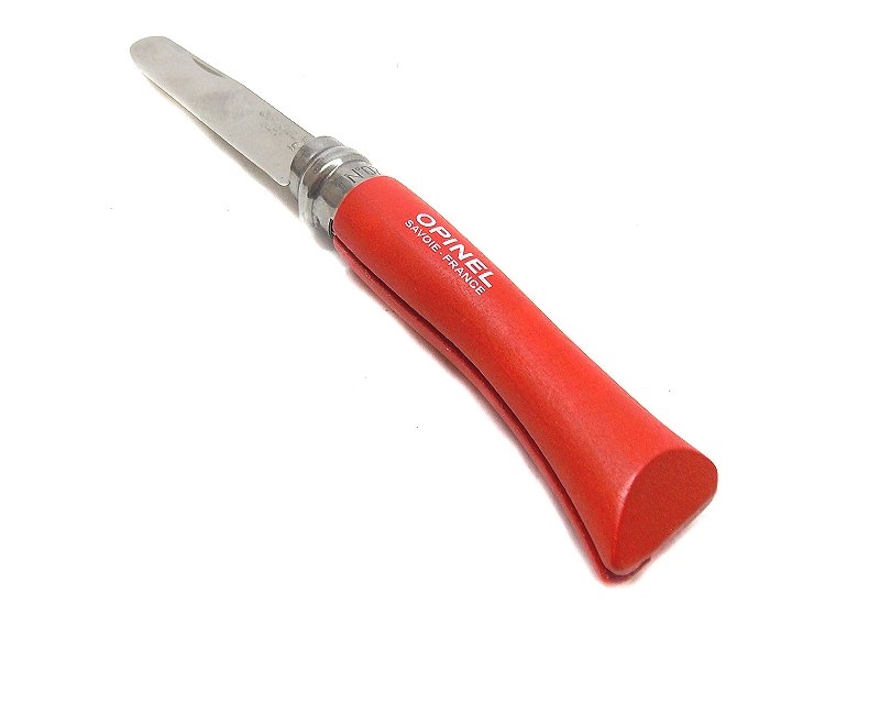 Coltello sportivo. Coltello Opinel con manico in legno verniciato e lama in acciaio inox con punta tonda. Lunghezza lama 7,5 cm, lunghezza totale aperto 17,5 cm, larghezza lama 1,5 cm. Blocco lama di sicurezza Modello Opinel N° 07. Colore manico disponibile: rosso o blu. Prodotto in Francia. Peso lordo: 58 grammi.