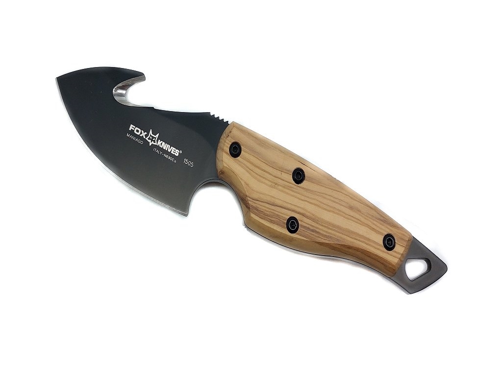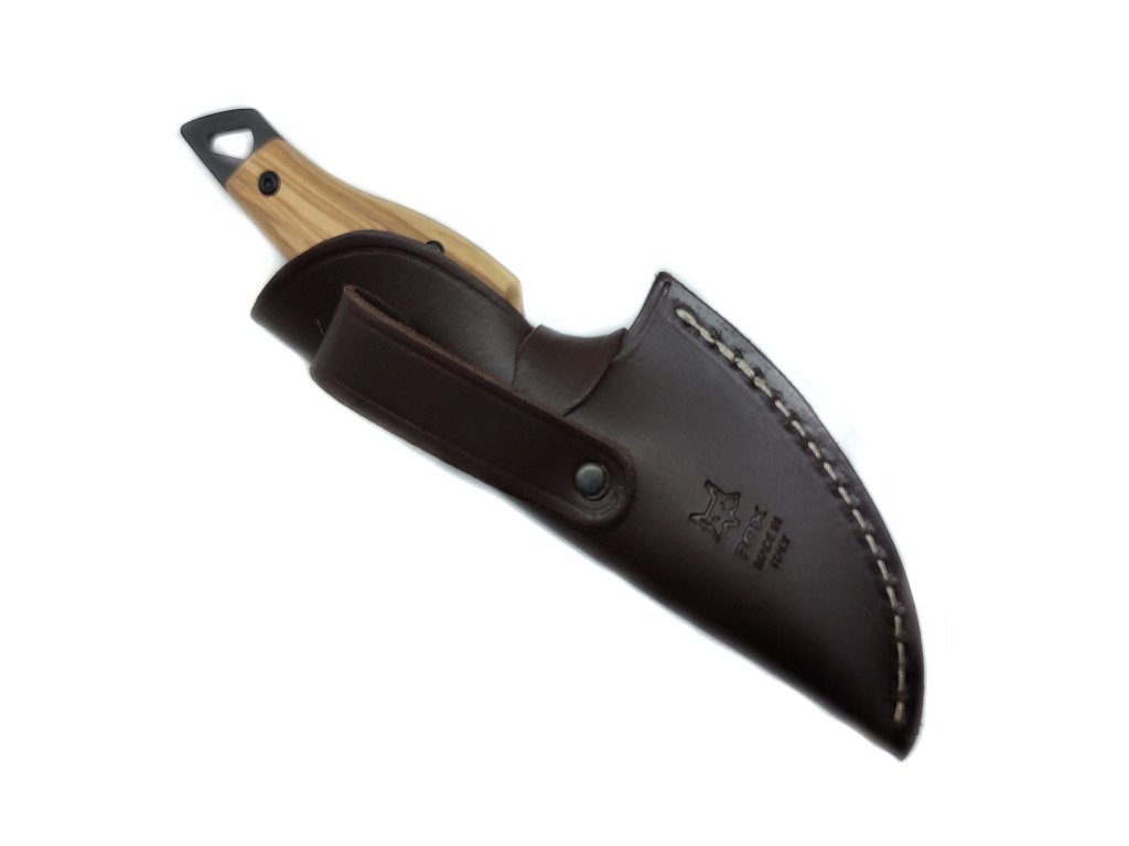 Coltello Fox da scuoio lama 8 cm e manico in olivo con scuoiatore