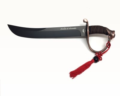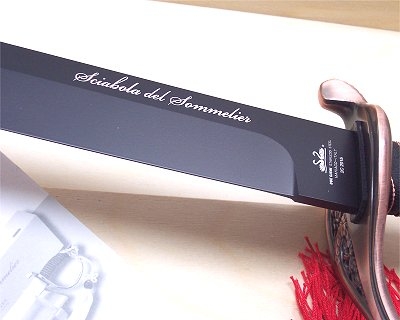 Lunghezza lama 40 cm, larghezza lama 3,8 cm, lunghezza totale 53 cm. Dotata di una custodia in legno. Sciabola per apertura della bottiglia di spumante. All interno pergamena con istruzioni per una perfetta sciabolata al collo della bottiglia. Lama in acciaio inox nera. Prodotto in Italia. Peso lordo: 2308 grammi.
