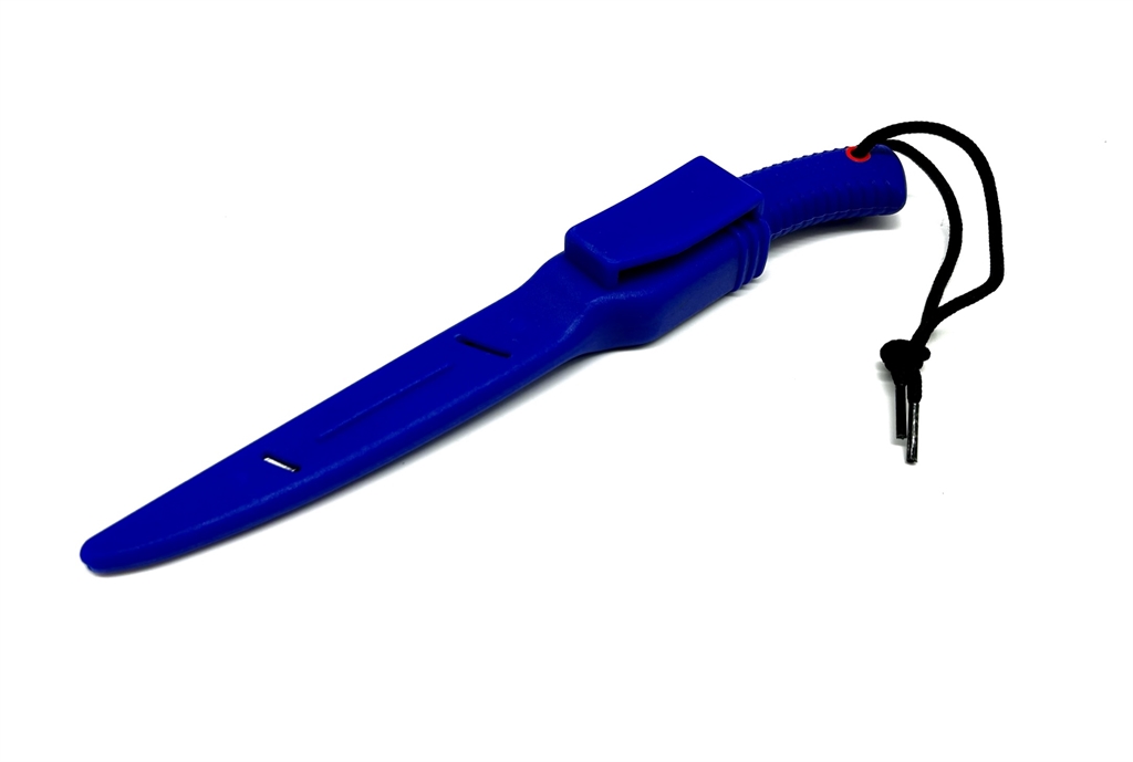 Coltello sportivo. Lunghezza lama fissa 13,5 cm, larghezza lama 1,8 cm, lunghezza totale 29 cm. Lama in acciaio inox. Manico in polimero antiscivolo. Dotato di fodero in polimero con passante per cinturone alto 5 cm. Prodotto in Italia. Peso lordo: 175 grammi.