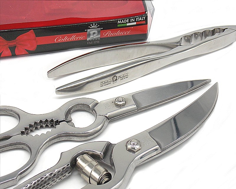 Confezione con un trinciapollo una forbice da cucina ed un rompinoci Paolucci