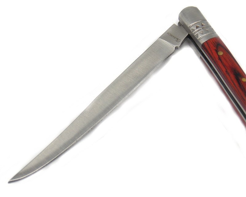 Coltello sportivo. Lunghezza lama 10 cm, lunghezza totale aperto 23 cm, larghezza lama 1 cm. Lama in acciaio inox. Manico in stamina, cioè legno laminato e tinto, molto resistente. Peso lordo: 69 grammi.