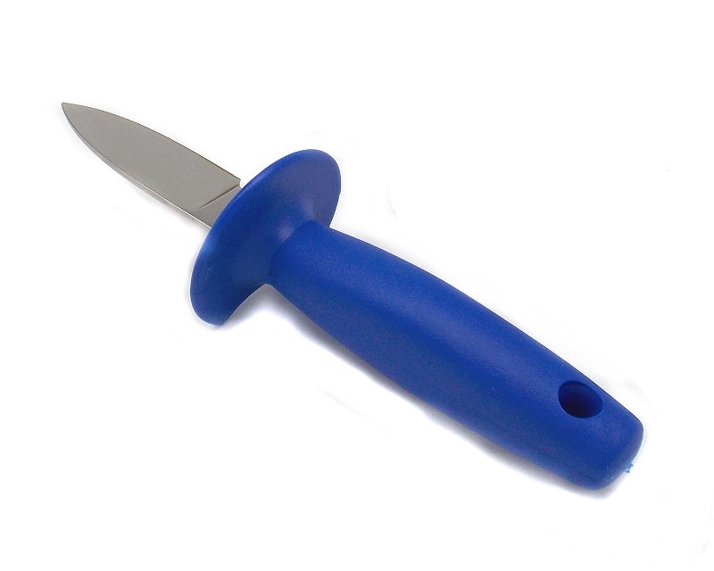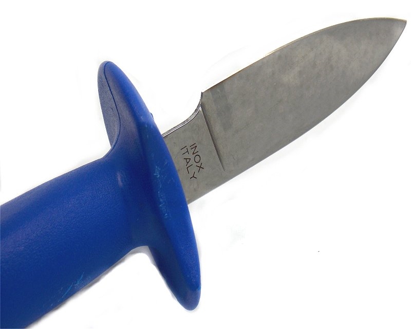 Coltello da cucina. Lunghezza lama 6 cm, larghezza lama 2 cm, lunghezza totale 18,5 cm. Manico in polimero blu. Prodotto in Italia. Peso lordo: 66 grammi.