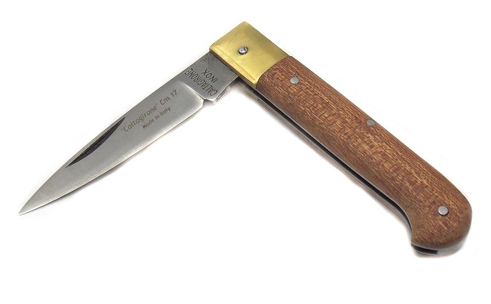 Coltello sportivo. Lunghezza lama 6 cm, larghezza lama 1,4 cm, lunghezza totale aperto 16 cm. Lama in acciaio inox, manico in legno. Prodotto in Italia. Peso lordo: 58 grammi.