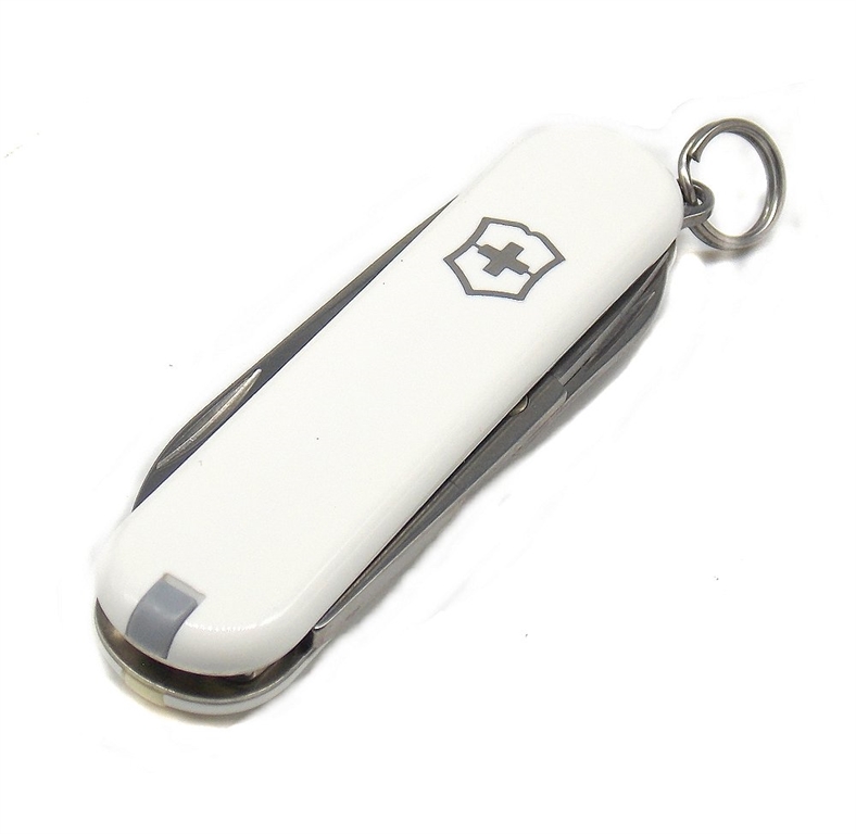 Coltello multiuso svizzero mignon. Misure chiuso: 6 x 1,5 cm. Manico colore bianco. Prodotto in Svizzera. Peso lordo: 35 grammi.