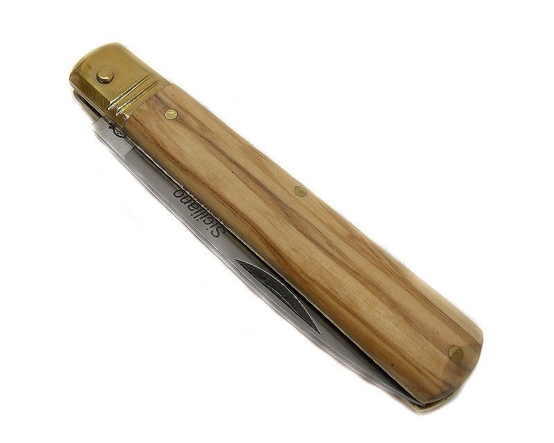 Lunghezza lama 7 cm, larghezza lama 1,2 cm, lunghezza totale aperto 17 cm. Manico in ulivo. Lama in acciaio AISI 420 J2. Dotato di anellino. Prodotto in Italia. Peso lordo: 60 grammi.