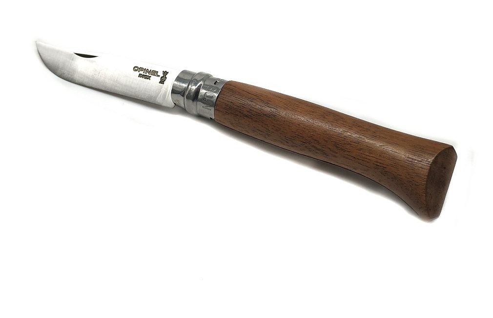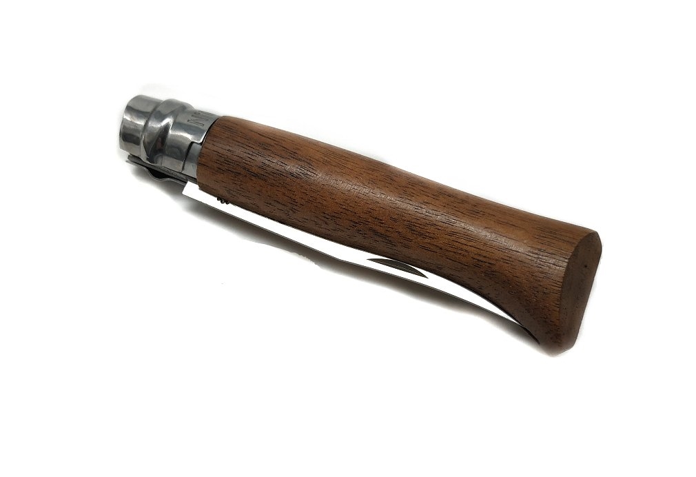 Coltello sportivo. Coltello chiudibile con lama in acciaio inox. Manico in Noce stagionato a forma leggermente anatomico. Lunghezza lama 8,5 cm, lunghezza totale aperto 19,5 cm, larghezza lama 1,8 cm. Prodotto in Francia. Peso lordo: 53 grammi.