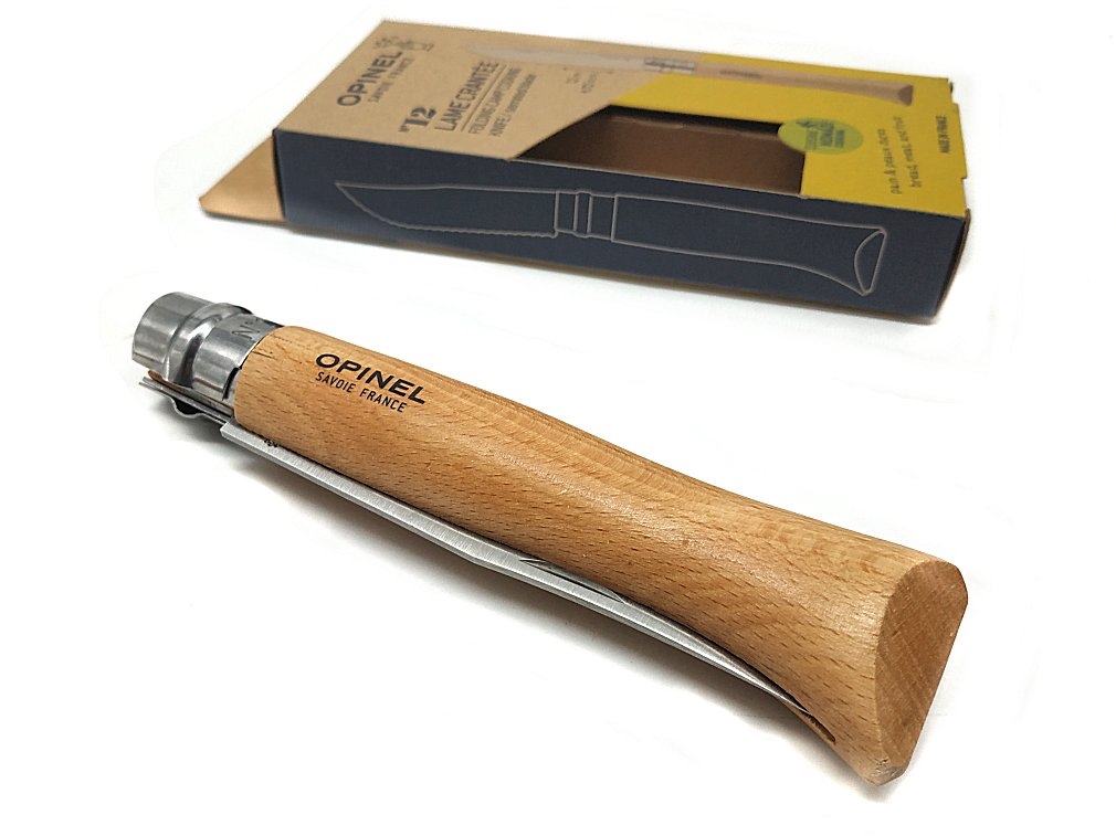 Coltello cucina con lama seghettata da 12 cm. in acciaio inossidabile, taglia agevolmente pane, verdura e frutta voluminosa. Manico in faggio verniciato. Sistema di sicurezza Virobloc per bloccare la lama in posizione aperta o chiusa. Peso lordo: 125 grammi. Prodotto made In France.