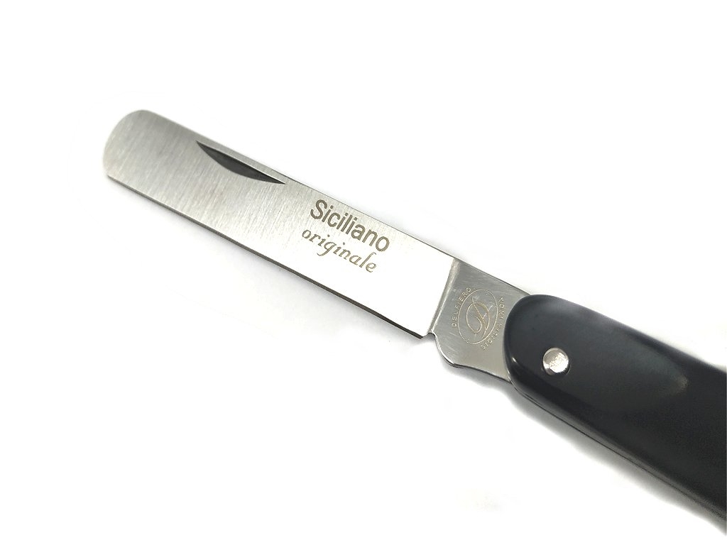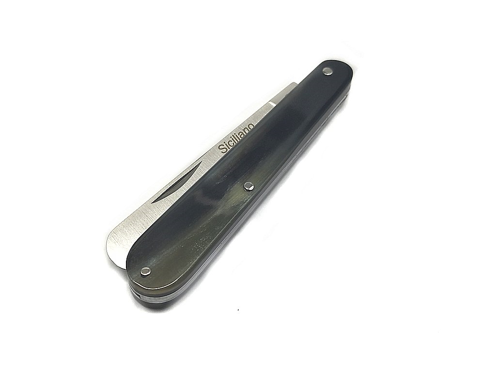 Coltello rasolino siciliano corno scuro 1424 cm 17