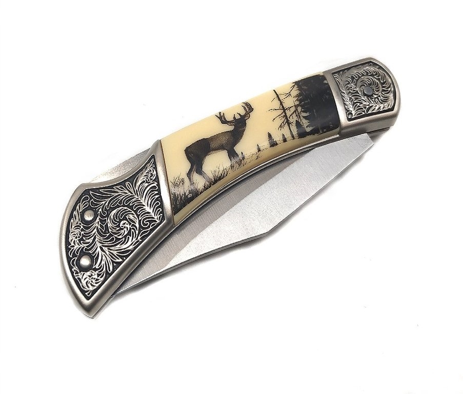 Coltello Albainox cervo decorato colore avorio lama cm 8