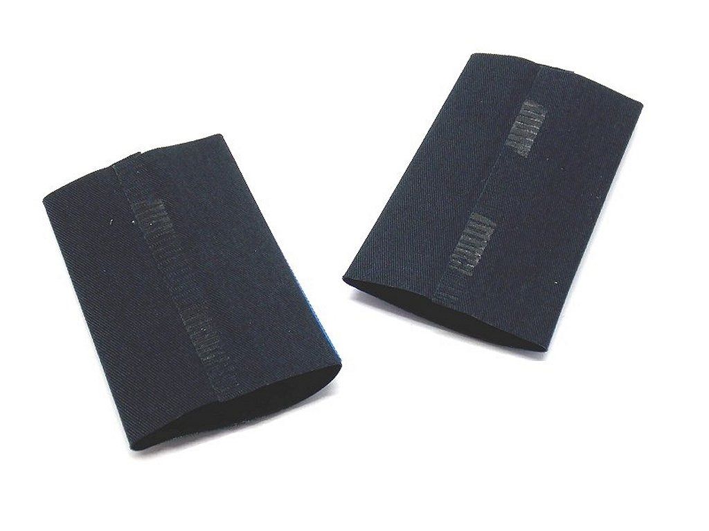 Pair of plastic-coated rods for shirt straps. Trapezoidal shape: length 9 cm and width 5.4/5.7 cm. Available with blue or crimson trim. Gross weight: 11 grams. Made in Italy.