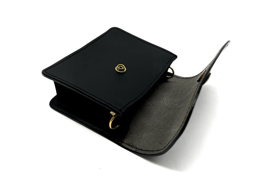 Larghezza 14,5 cm, altezza 12,5 cm, profondità 4 cm. Chiusura con un bottone a pressione. Dotato di due anelli per la tracolla (non in dotazione). Peso lordo: 240 grammi. Prodotto in Italia.