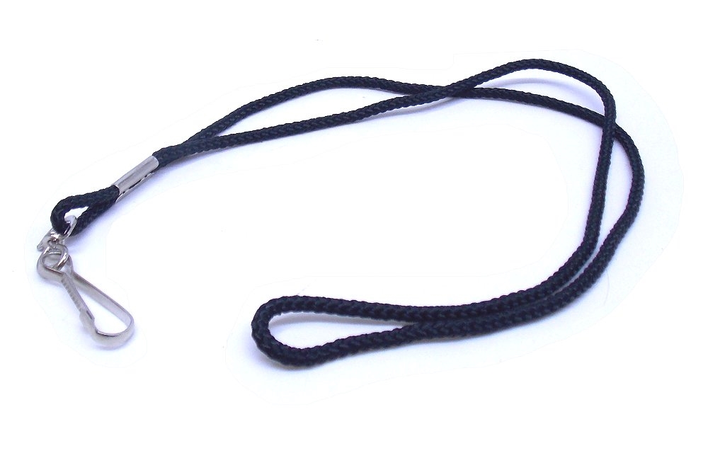 Cordoncino in nylon con moschettone per aggancio fischietto. Lunghezza 55 cm. Colori disponibili nero o verde. Peso lordo: 12 grammi.