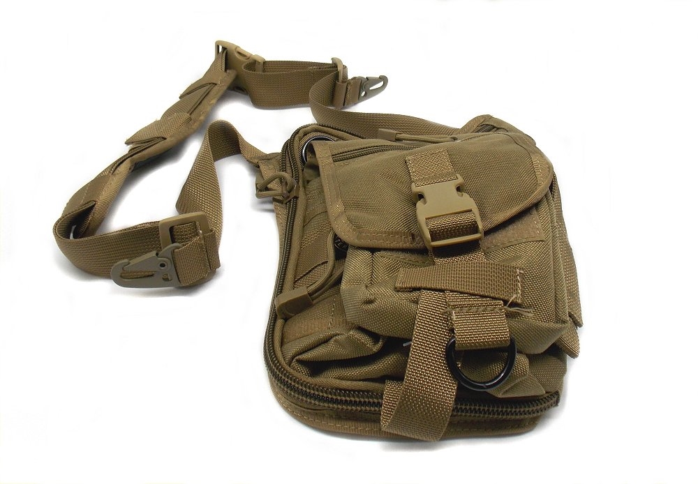 Borsa multi tasca in cordura. Porto a tracolla con possibilita di ancoraggio in cintura. Rete traspirante sul dietro. Grande tasca modulare compatibile con sistema velcro 2vs ad apertura totale rapida con possibilita di blocco dei due cursori. Tasche interne ed esterne per il porto di vari oggetti. Misure: h 23 x l 14 x p 6 cm. Colori disponibili: nero e desert. Lunghezza massima della cintura per il porto a tracolla e di 125 cm. Peso lordo: 675 grammi.