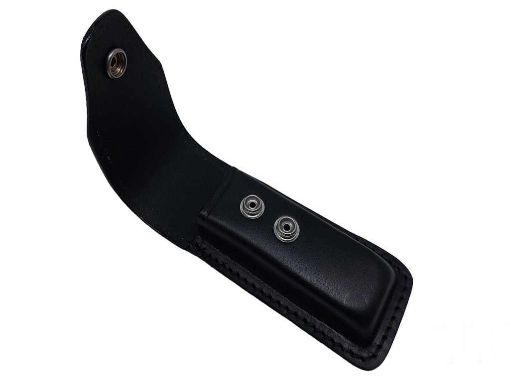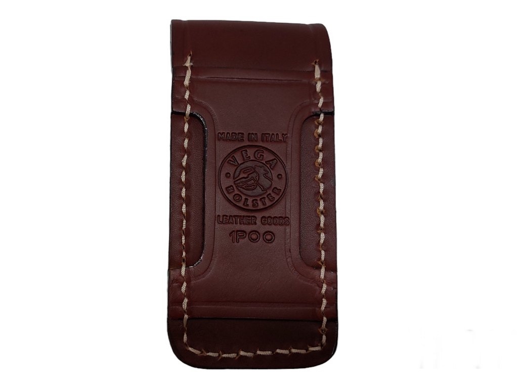 Porta caricatore bifilare in cuoio. Doppio bottone. Colori disponibili: bianco, nero e marrone. Possibilità di portarlo verticalmente oppure orizzontalmente. Per il porto verticale il passante dietro cucito è per cinturoni fino a 5 cm di altezza. Per il porto orizzontale il passante dietro cucito è per cinturoni fino a 4 cm di altezza. Misure: lunghezza utilizzabile da 12,5 cm a 14 cm, larghezza interna 3,5 cm, ampiezza interna 2,8 cm. Peso lordo: 80 grammi. Prodotto in Italia.