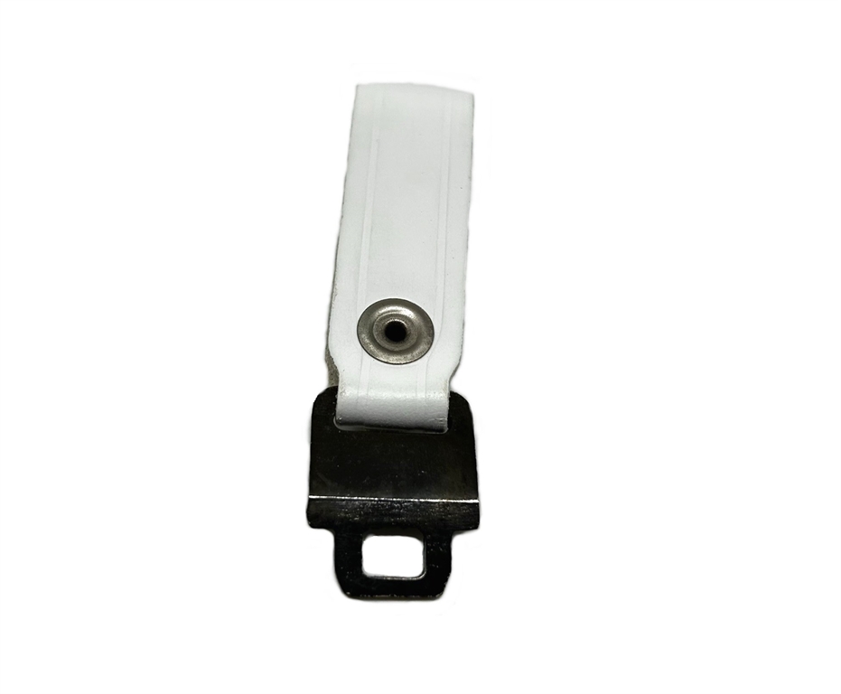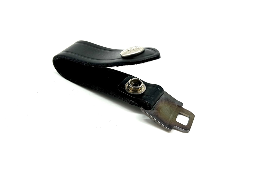 In pelle con passante cintura staccabile, e piastrina di aggancio in metallo. Dimensioni: lunghezza 11 cm, larghezza 2,5 cm. Passante per cintura larga massimo 5 cm. Colori disponibili: bianco o nero. Peso lordo: 31 grammi. Prodotto in Italia.