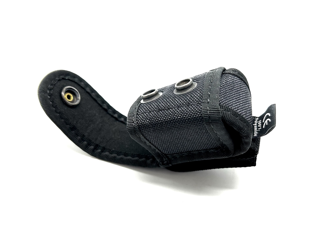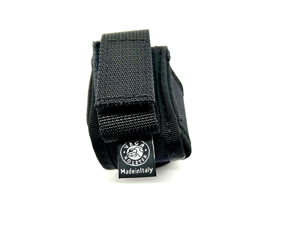 Lunghezza 7,5 cm, larghezza 5 cm. Chiusura nastro regolabile. Passante per cinturoni regolabile altezza massima 7 cm. Peso lordo: 30 grammi. Prodotto in Italia.