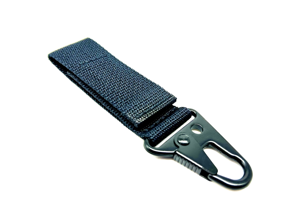 Passante in nylon rinforzato da 5 cm di altezza regolabile con strip a chiusura e moschettone in metallo verniciato antiossidazione con sistema di apertura e chiusura a coccodrillo. Colori disponibili: nero, verde, blu o desert. Dimensioni chiuso compreso moschettone: 12x3 cm. Peso lordo: 35 grammi. Prodotto in Italia.