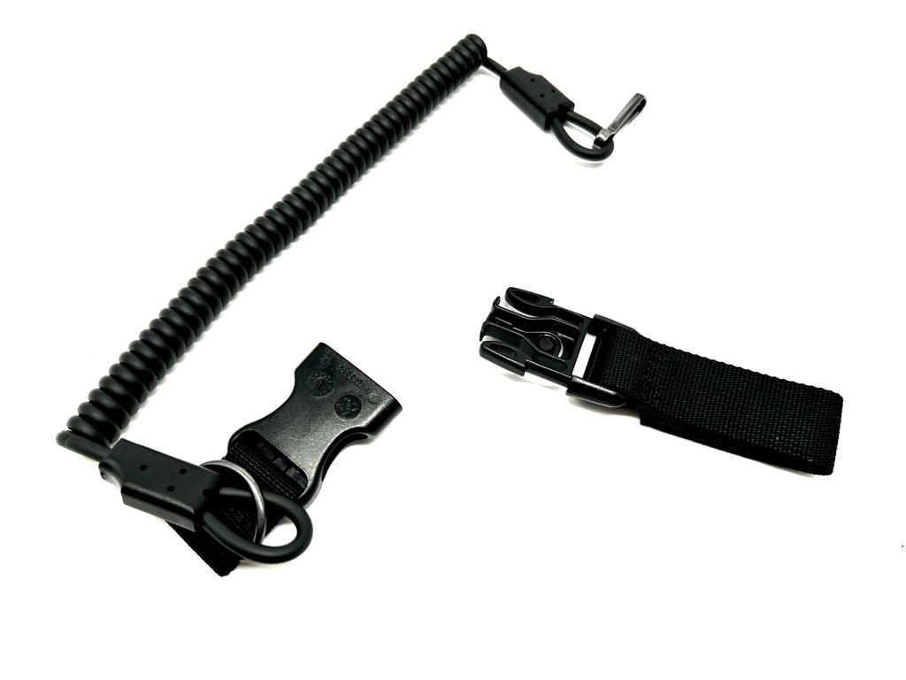 Cordoncino in polimero estensibile di sicurezza a nastro con finali termofusi con passante a nastro con strip per cinture e cinturoni fino a 6 cm di altezza . Pulsante di sicurezza in polimero con doppia chiusura. Lunghezza totale senza estensione: 50 cm. Colori disponibili: nero, blu, verde, desert, bianco. Peso lordo: 80 grammi. Prodotto in Italia.