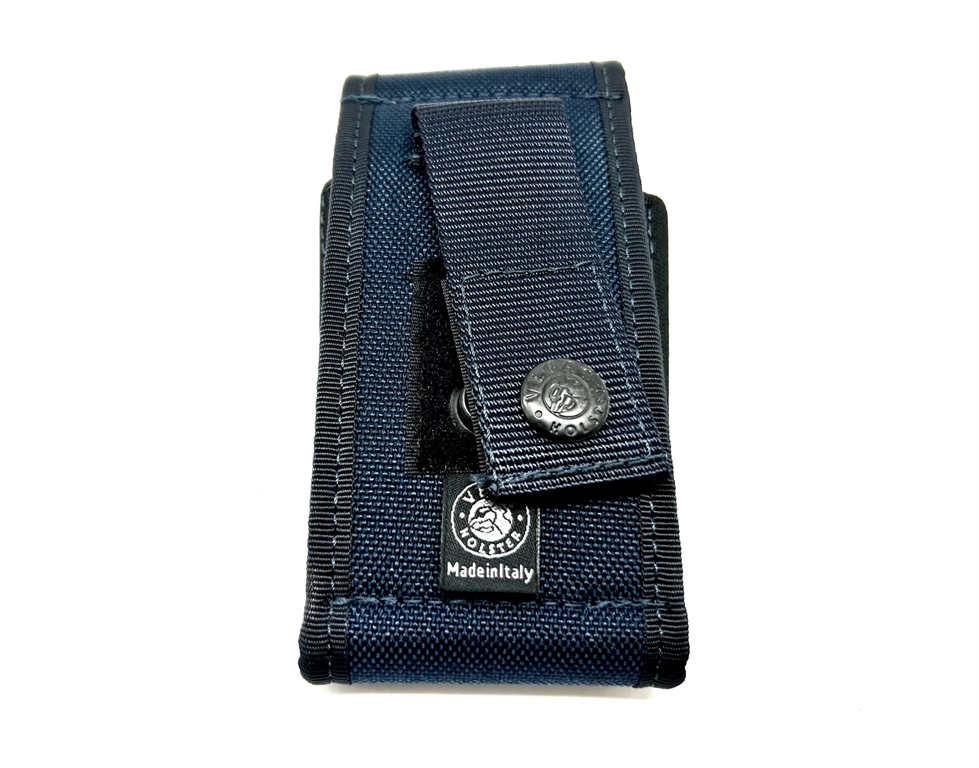 Porta smartphone in cordura universale, tramite elastico laterale regolabile con strip. Chiusura con strip. Passante per cinturoni alti fino a 5 cm. Larghezza 6,5 cm, lunghezza circa 14 cm. Colori disponibili: nero, blu. Peso lordo: 70 grammi. Prodotto in Italia.