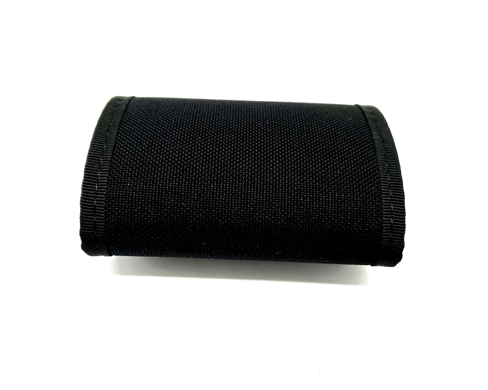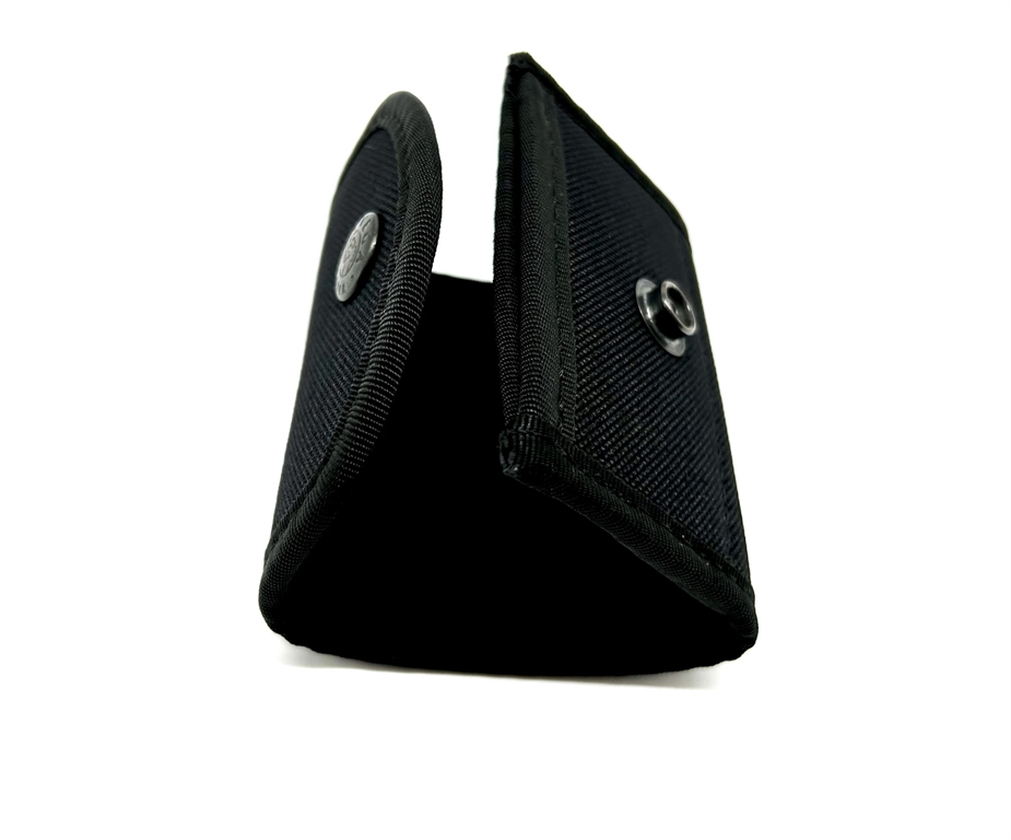 In cordura con passante per cinturoni alti 6 o 6,5 cm. Dimensioni: lunghezza 8 cm, larghezza 9,5 cm. Per calibro 38/357, 6 posti. Peso lordo: 35 grammi. Prodotto in Italia.