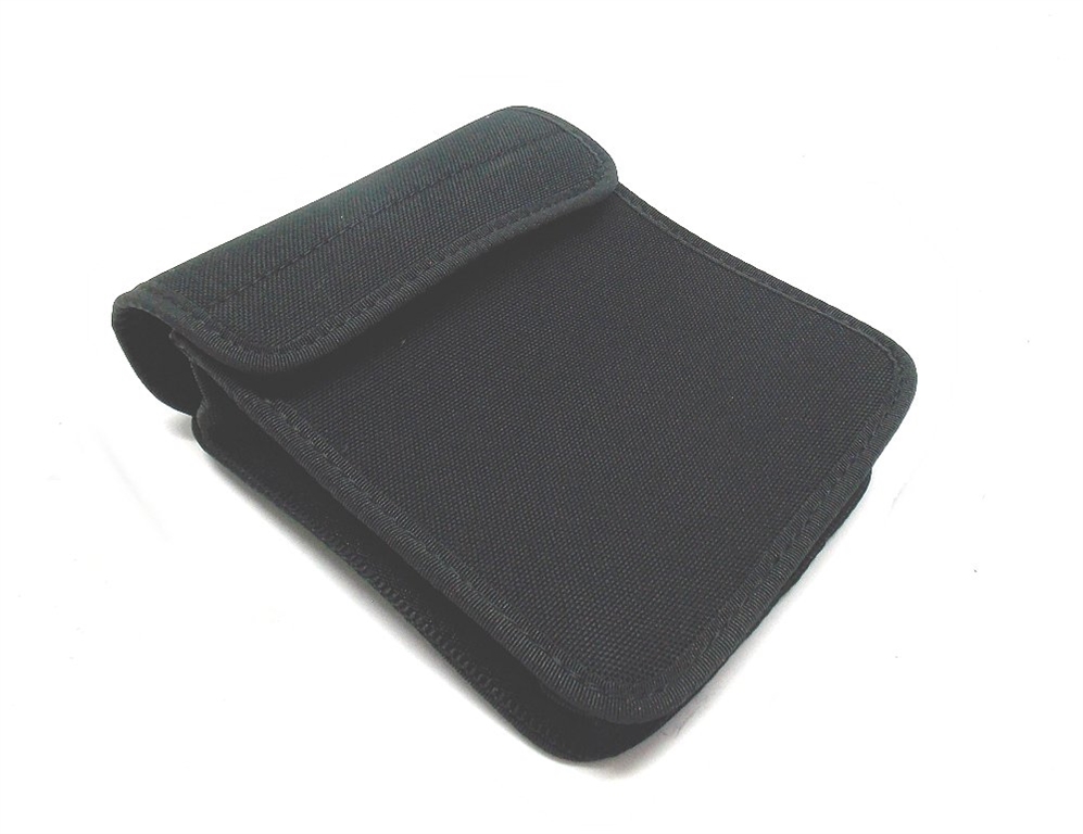 Dimensioni: lunghezza 18 cm, larghezza 15 cm, profondita 4 cm. Chiusura con strip, passante dietro per cintura apribile altezza 6 cm. Colori disponibili: nero, verde. Peso lordo: 130 grammi. Prodotto in Italia.