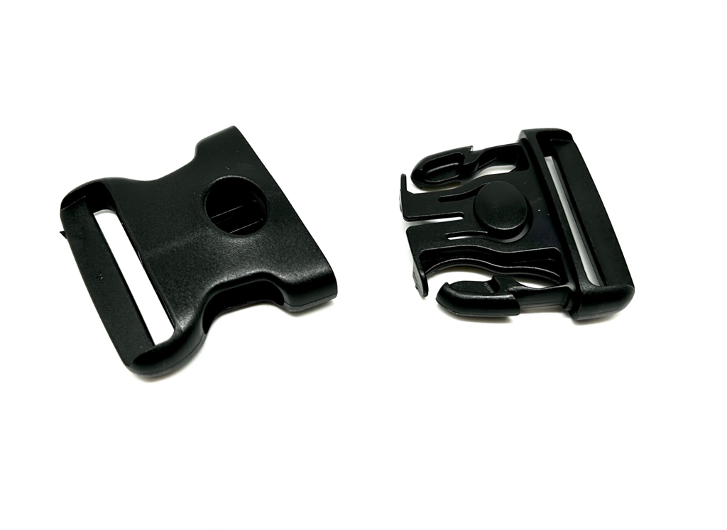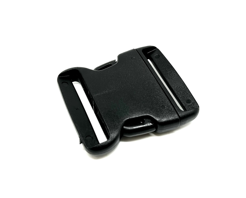 Fibbia in polimero a scatto per cinturoni in cordura 2V58 altezza asola 5 cm. Larghezza 7,5 cm, altezza 6,5 cm. Colore nero. Peso lordo: 40 grammi.