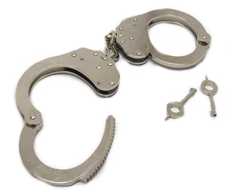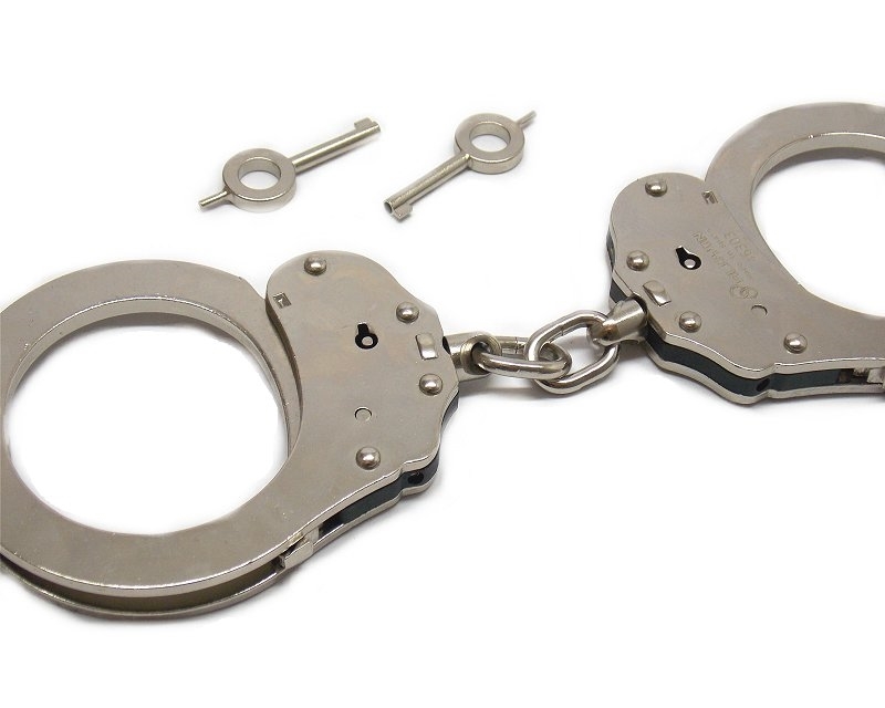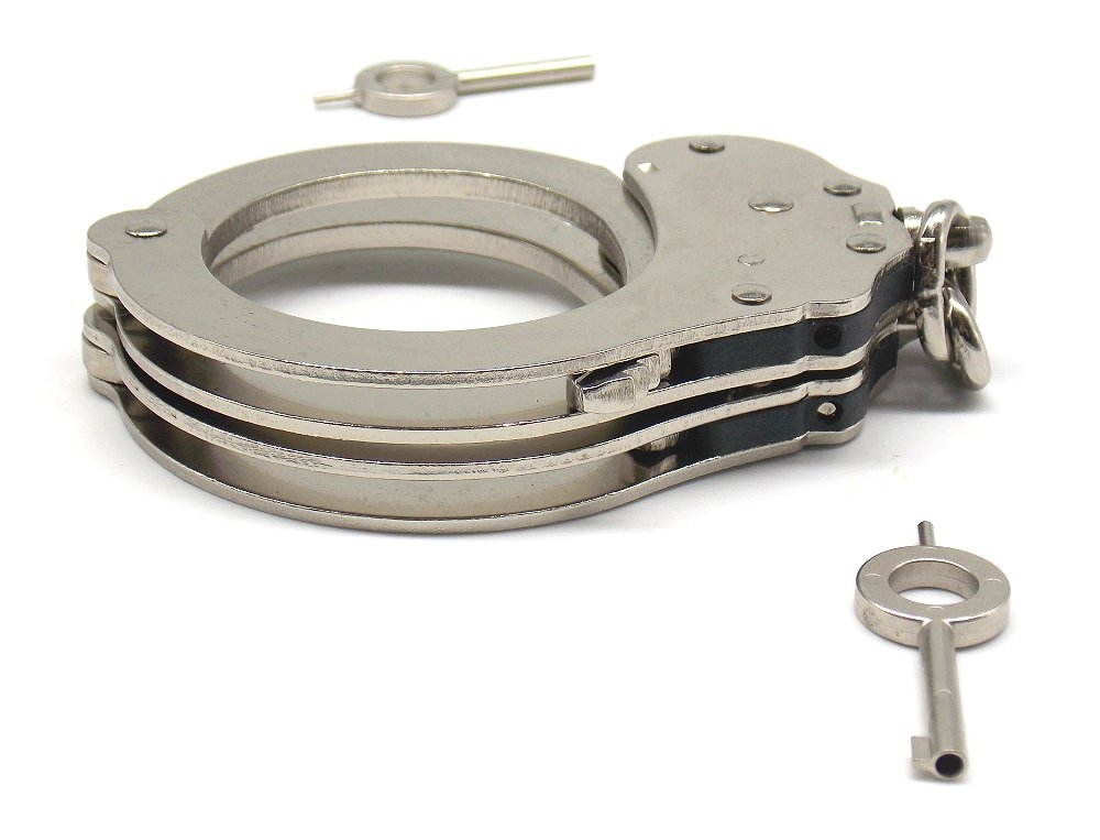 Manette in acciaio nichelato pesante. Con sistema di doppio bloccaggio che evita ogni movimento di ulteriore restringimento della manetta al polso.( dopo avere chiuso le manette ai polsi fino alla misura sufficiente, premendo con la punta opposta della chiave della manetta sul foro presente nel bordo della manetta). Vendita riservata esclusivamente agli appartenenti alle forze armate. Ogni paia di manette ha inciso il numero di matricola di produzione. Peso lordo: 295 grammi. Prodotto in Spagna.
