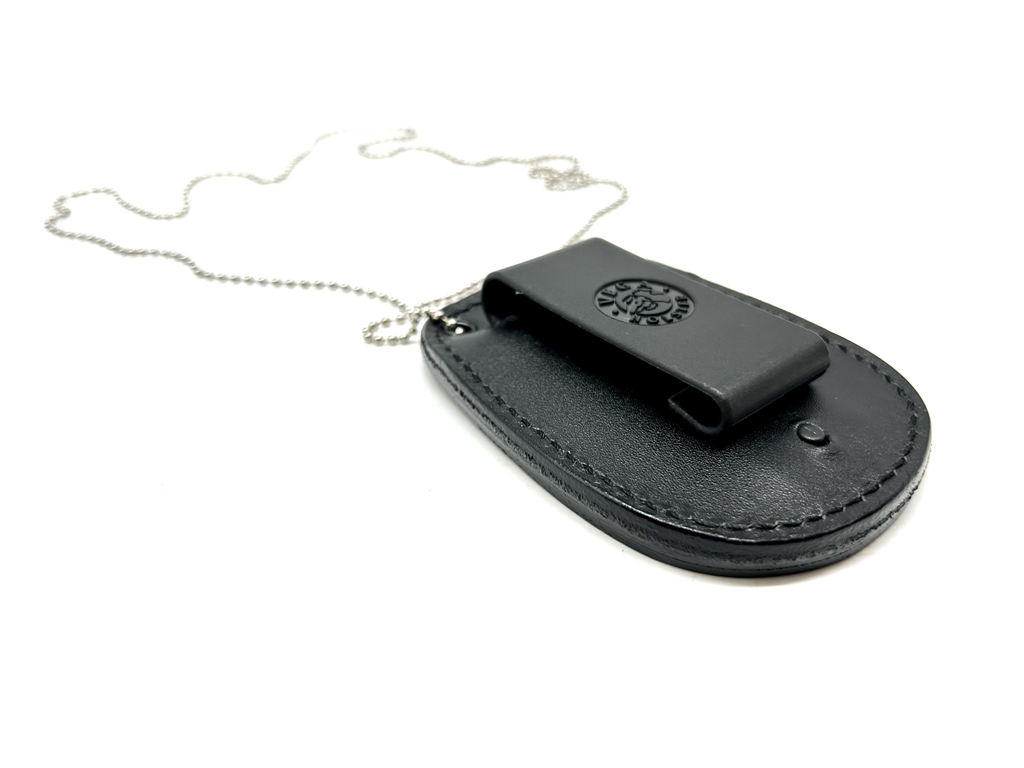 In cuoio con alloggiamento placca operativa Guardia di Finanza, da collo e con clip. Dimensioni: altezza 10 cm, larghezza 7 cm. Peso lordo: 62 grammi. Placca non compresa. Prodotto in Italia.