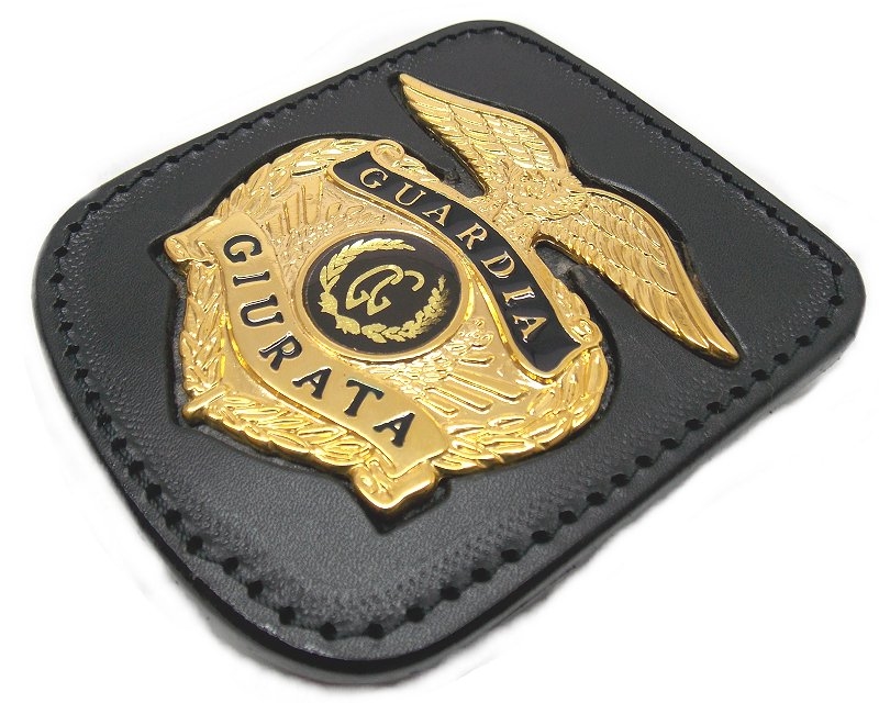 Porta placca in cuoio con molla in polimero dietro per attacco alla cintura, con placca metallo Guardia Giurata. L'acquisto non istituzionale di questo articolo è consentito esclusivamente a coloro che dimostrino la propria Titolare appartenenza a quell'Istituto di Vigilanza, Corpo di Polizia, Ente, Ministero e Associazione che rappresenta il distintivo contenuto in questo prodotto. Ogni abuso o cessione impropria di questo prodotto è considerato reato. Peso lordo: 100 grammi. Prodotto in Italia.