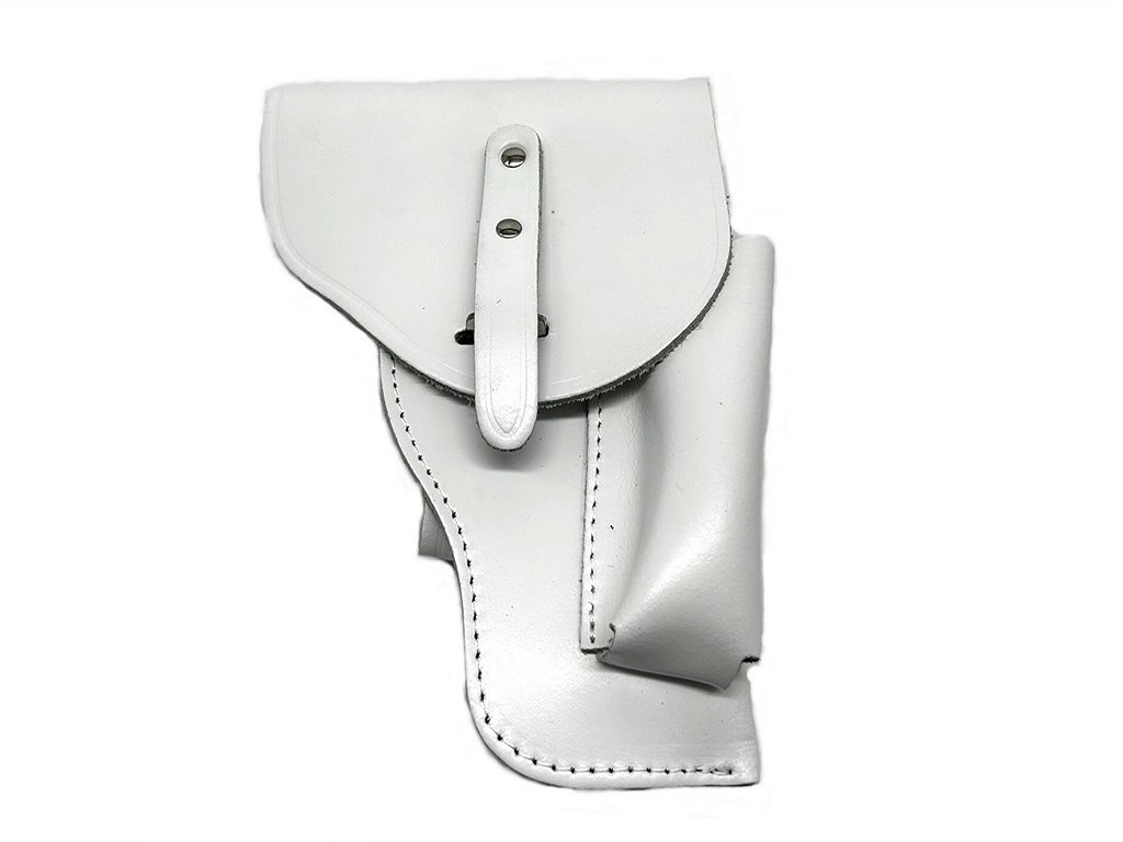 Fondina in cuoio con pattina. Prolunga passante con 2 bottoni. Porta caricatore. Colore disponibile: nero e bianco. Disponibile per le seguenti armi: Beretta 81, 84, 85. Altezza ideale della cintura per poter essere adattata al meglio la fondina è 4 cm. Peso lordo: 225 grammi. Prodotto in Italia.