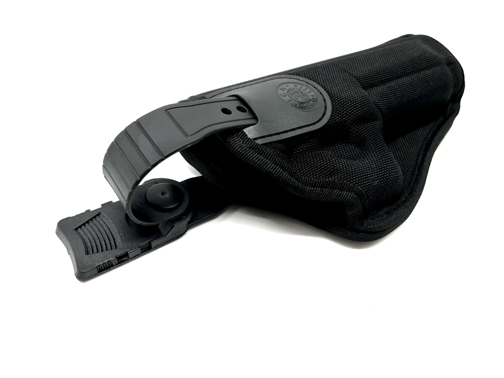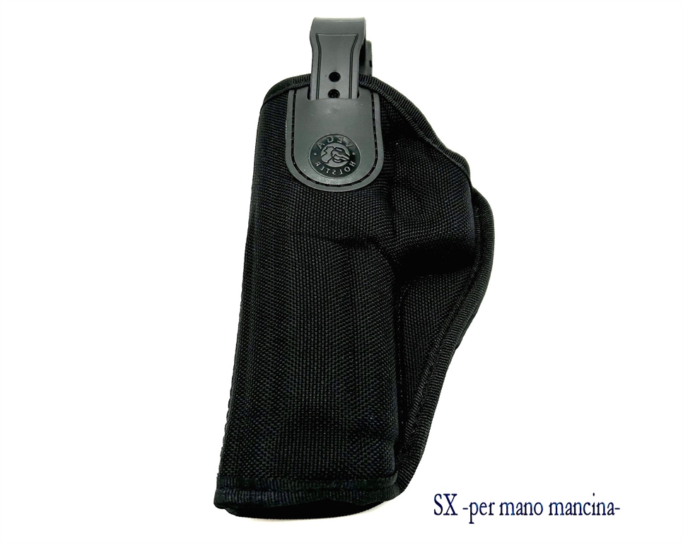 Fondina da cintura in cordura dotata di sgancio rapido con sistema di sicura vega stop snap. Posizione inclinata fianco destro. Le due asole del passante sono per cinture alte 4 cm e sono predisposte pure per cinturoni alti 6 cm. Disponibile per large auto tipo beretta 92, 98, px4 storm, 8000, 9000, 84, beretta apx, revolver 2 e 4 pollici, glock 17, 19, 20, 23, 25, 27, 29, 32, 38, 42,43,colt 1911, sig sauer p225, p228, p229, walther pps, ppq, p99q, p99. Peso lordo: 120 grammi. Prodotto in Italia.