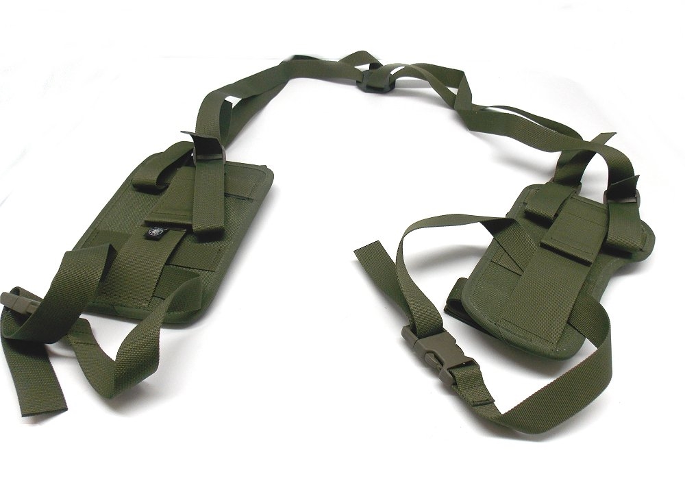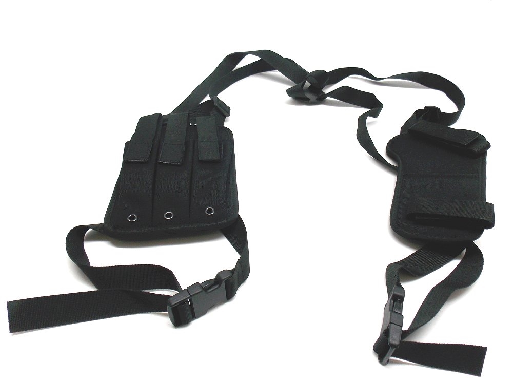 Kit completo ascellare per h&k mp5 con 3 posti per caricatori della stessa arma, con alloggiamento arma, disponibile nei colori nero o verde. Attenzione h&k mp5 non incluso nella confezione. Peso lordo: 505 grammi. Prodotto in Italia.